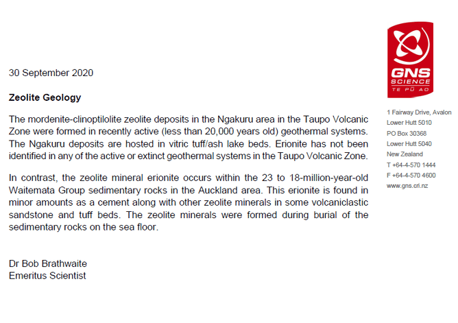 The Tokoroa-based company’s zeolite has a range of beneficial chemical properties, which stands in stark contrast to erionite, a very unusual asbestos-like mineral, the subject of University of Auckland research.